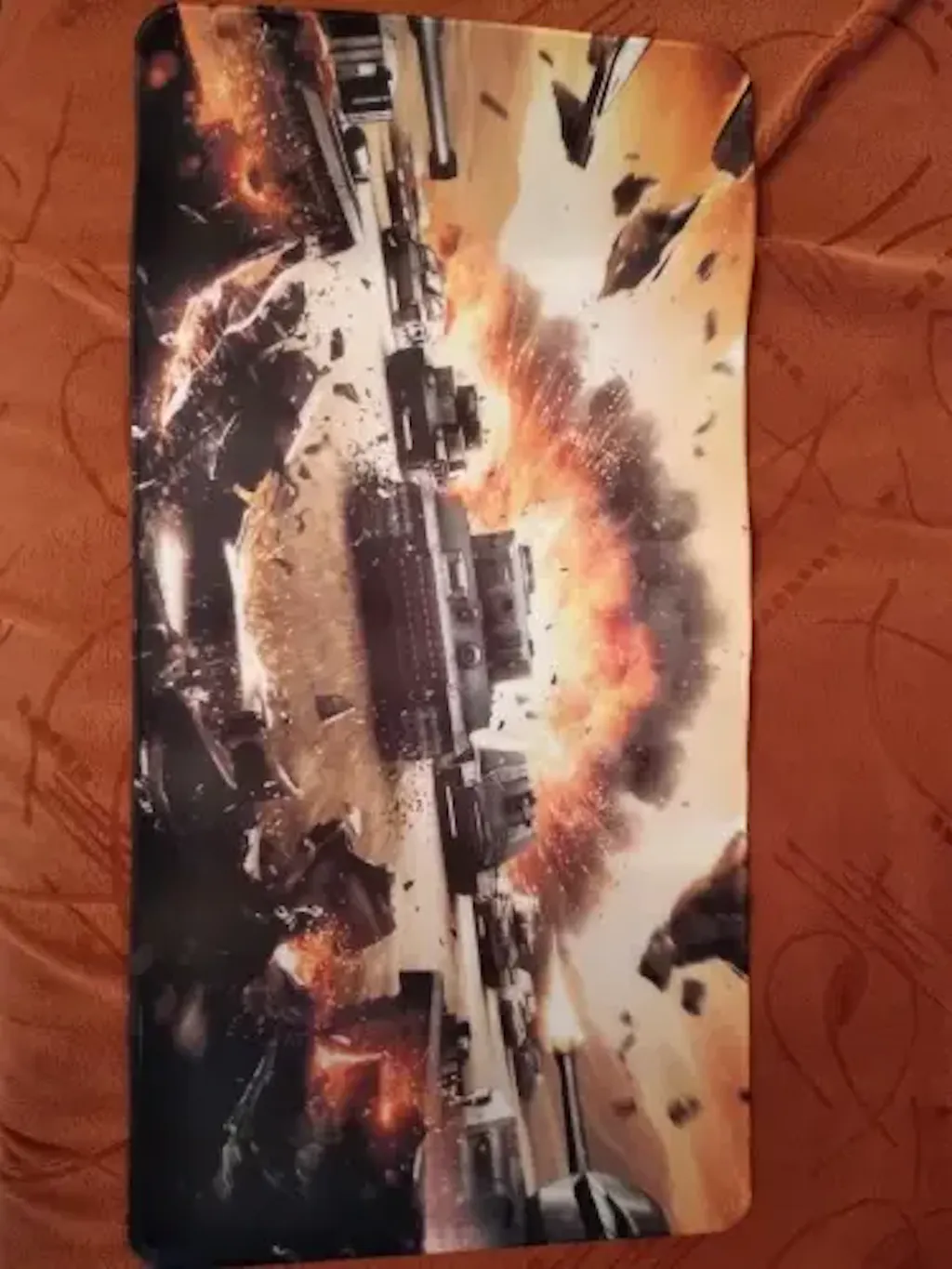 Large gaming mouse pad with non-slip rubber base and smooth cloth surface. Available in multiple sizes to fit your desk setup. Features heat transfer printing for vibrant, long-lasting designs.