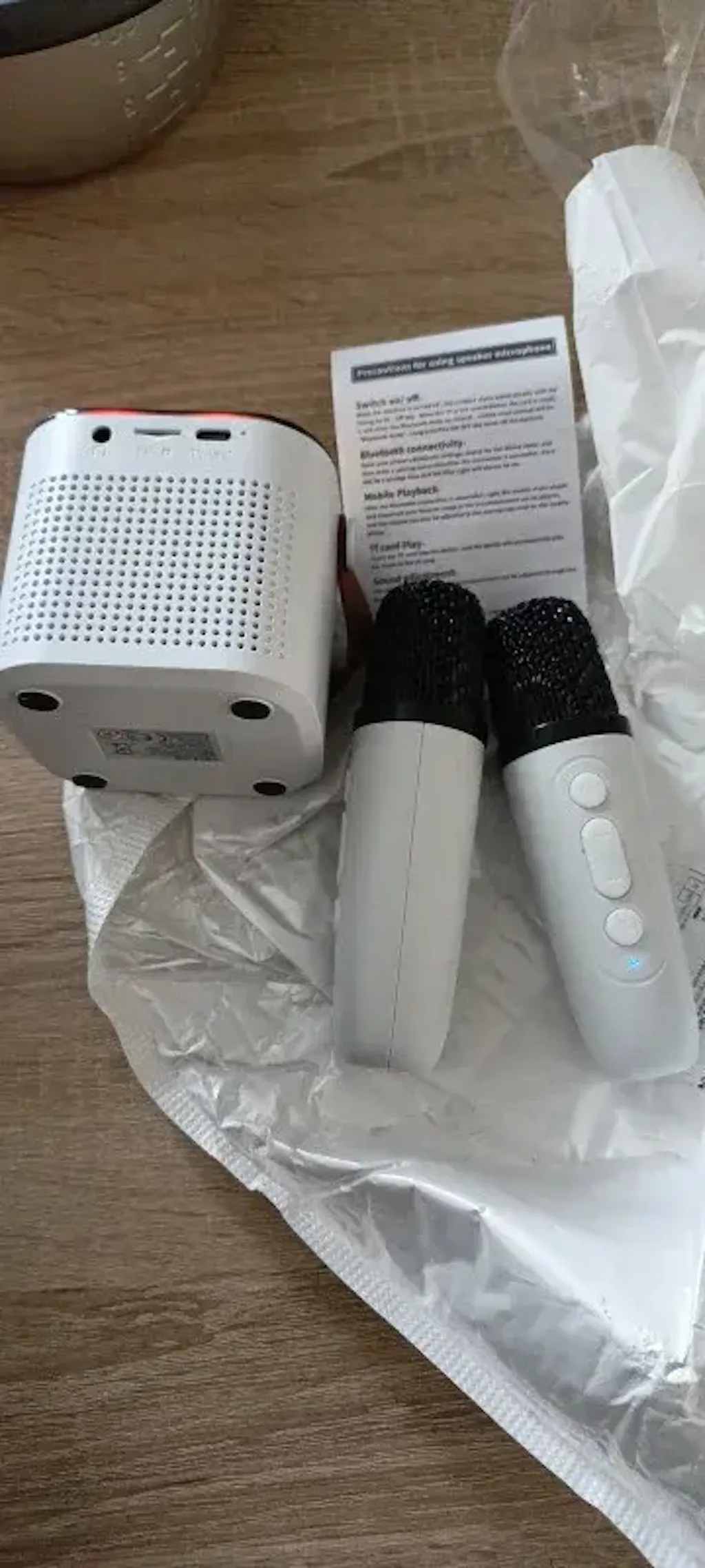 This all-in-one karaoke system combines a powerful Bluetooth speaker with two wireless microphones and RGB light effects for the ultimate home entertainment experience. Whether it's family sing-alongs, parties, or just having fun, everyone can join in with dual microphones included.